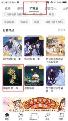 第六步、支付完成点击广播剧,选择自己需要付费购买的广播剧。