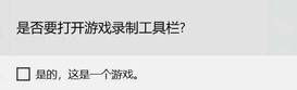 3,按键盘的“Win + G”键后提示“是否需要打开游戏录制工具栏”,勾选“是的”,就可以启动录屏工具栏。