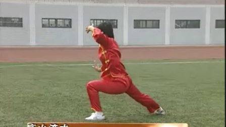 至于“三盘”,拳书云:“上盘行走如追风,中盘动作如游龙,下盘落地见真功。”三盘实是升降高低的幅度表示。并贯穿于拳路的全过程。