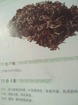 碧螺春外形:芽白毫卷曲成螺,叶显青绿色,条索纤细,色泽碧绿。