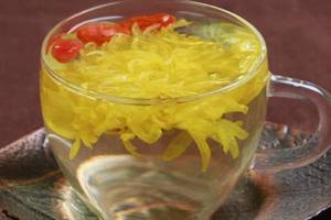 加点枸杞会更好,其实金丝皇菊冲泡非常简单。只需掌握几点即可。 第一:好的容器。首先透明玻璃器皿,主要便以观赏。也可以用盖碗或者瓷器口杯。 第二:好水,所谓水是茶的灵魂。金丝皇菊对水的的要求也是非常严格,最好是山泉水。家里平常饮用,建议采用矿泉水。 第三:100度。主要的事说三遍:100度,100度,100度。冲泡的水必须是100度的沸水,这样才能冲泡开。 掌握了这三点,其他的事都是水到渠成。将金丝皇菊干花置于器皿,注入100度的沸水,3分钟左右,金丝皇菊菊花茶就好了。 还有一个小技巧或者乐趣。第一泡冲泡好,倒出三分之二,留有三分之一。这样后面泡出来的汤色口感更好,还可在冲泡时,观赏到金丝皇菊中皇菊的功效与作用?