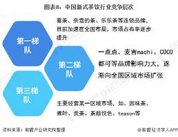 从竞争层次来看,新式茶饮行业企业数量众多,全国性连锁品牌数量较少,主要以区域性市场竞争为主,行业集中度较低,市场竞争格局较为分散。目前行业第一梯队企业,主要以喜茶、奈雪的茶、乐乐茶等全国性连锁品牌为主。