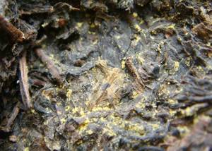 在休眠期,黄曲霉菌只有黄粉状孢子存在,但在生长期,有明显的菌丝形成。 “金花”在生长发育期菌丝不明显,显微镜下,菌丝短、顶端大、且发白,见氧气后很快就消失。成熟后以金黄色囊壳存在。