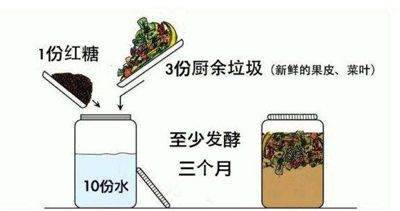 然后按照一份红糖三份果皮菜叶材料。加10份水的比例。放入干净无油的瓶子中。