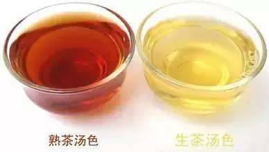 生茶颜色青绿,而熟茶暗红或栗红,栗黑色。