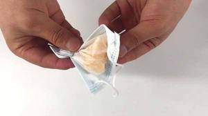 4.另外,我们还可以用肥皂块做祛味包。家里的肥皂拿一块,用剪刀剪成肥皂碎,放进口罩的隔层里。
