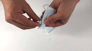 3.用之前取出来的钢丝打结。一个祛味包就做好了,我们可以把它放进鞋子里,十几个小时后,鞋子里就不会有臭味。