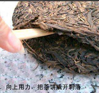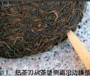 1.把茶刀从茶饼侧面沿着边缘插入。