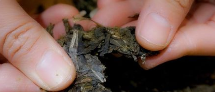 8、拆下来的散块,还是推荐用双手向两侧拉开(而不是掰开),如此可更好的保存茶品条索的完整。