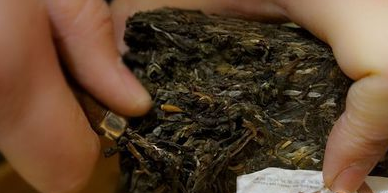 9、将茶叶收拢装入存茶盒中待用,拆茶工作即大功告成。