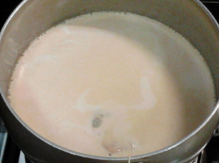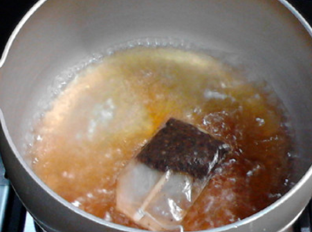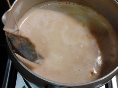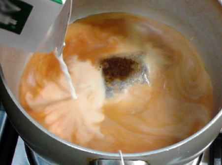 7、次日,将奶茶再次煮至沸腾后取出茶包,