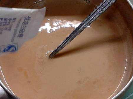9、倒入砂糖,搅拌溶化后,热饮或冷藏后饮用。