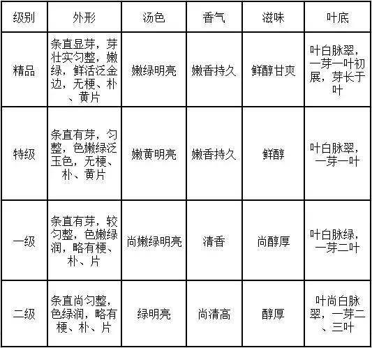 _安吉白茶分为精品、特级、一级、二级共四个质量等级。