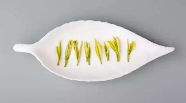 安吉白茶,早春,受温度影响,叶绿素缺失,幼嫩芽呈玉白色,以一芽二叶为最白;