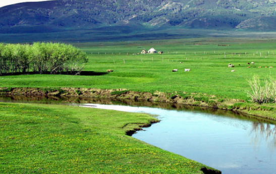 这次,我看到了草原。那里的天比别处的更可爱,空气是那么清鲜,天空是那么明朗,使我总想高歌一曲,表示我满心的愉快。在天底下,一碧千里,而并不茫茫。四面都有小丘,平地是绿的,小丘也是绿的。
