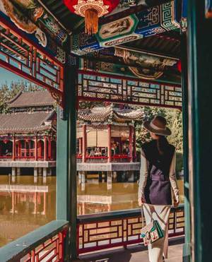 2、我选择了左侧亭子的靠中间的位子,可以拍到王府的大部分景观,又有温暖的阳光洒在身上,暖暖的~