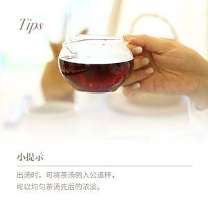 5、出汤。头4泡注水后立刻出汤,第5泡后每泡延长3-5秒浸泡时间,因为普洱熟茶的渗出物溶解速度快,出水时水柱不宜过高,力度不宜过重,因此适宜用水柱快速注水,快速出汤。
