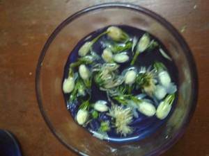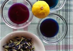 2、染色蝶豆花(假):其他花卉和水果用化学材料漂白和染色制成。