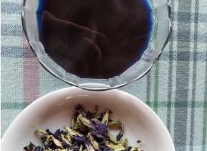 用料 :蝶豆花适量,面粉若干,水,酵母,白糖适量。