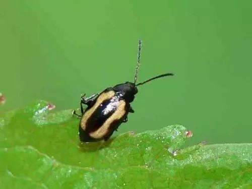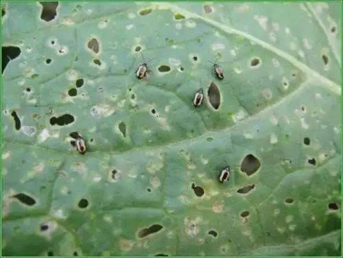 黄曲条跳甲属鞘翅目、叶甲科害虫,俗称狗虱虫、菜蚤子、跳虱、土跳蚤和黄跳蚤等,简称跳甲,常为害叶菜类蔬菜,以甘蓝、花椰菜、白菜、菜薹、萝卜、芜菁、油菜等十字花科蔬菜为主,但也为害茄果类、瓜类、豆类蔬菜。近几年,随着种植结构的调整和设施栽培的普及,黄曲条跳甲的发生危害逐年加重。[1]