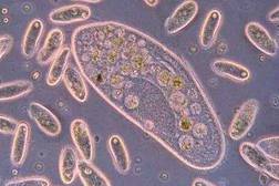 4.绿草履虫体长的长度为80-150微米。观察到绿藻的细胞质共生,光照培养时全身呈绿色。一个小核,密集型。生活在清澈的池塘里。