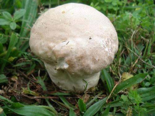 马勃,俗称牛屎菇、马蹄包、药包子、马屁泡;担子菌类马勃科。嫩时色白,圆球形如蘑菇,体型较大,鲜美可食用,嫩如豆腐。老则灰褐色而虚软,外部有略有韧性的表皮,顶部出现小孔,弹之有粉尘飞出,内部如海绵,黄褐色。