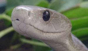 2、黑曼巴蛇(学名:Dendroaspis polylepis) 为眼镜蛇科的一员,是非洲最长、最可怕的毒蛇,也是全世界最致命的蛇。黑曼巴蛇是世上毒蛇中体型最长、速度最快、攻击性最强的杀手。它能以高达19千米的时速追逐猎物,而且只需两滴毒液就可以致人死亡。更可怕的是,不管在任何时候,黑曼巴蛇的毒牙里都有20滴毒液,人类一旦被它咬到,几乎百分之百死亡!