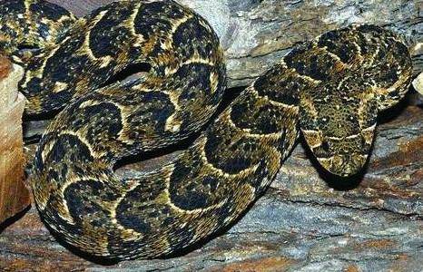 这种毒蛇也是在电视上经常能够见到的,很多的纪录片,都有拍摄到它的踪影,它的肤色其实是很漂亮的,是月亮型的花纹。这种蛇在白天很懒,几乎不活动,但是,因为它的花纹和肤色的原因,它们很善于伪装,所以,很多猎物无法辨别它们,就会成为它们的口中餐。它是非洲的头号毒物,因为他在非洲大陆上的战绩惊人,每年因它而去世的人,要比其他毒蛇的总数还要多。