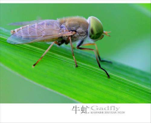 牛虻别称有牛蜢,虻虫,牛蚊子,中华虻、白斑虻、灰虻。为动物界双翅目Diptera,喜爱舐吸家畜血液,遍布全国各地。牛虻为中形到大形的种类,强壮而有软毛。头大,半球形,或略带三角形。复眼很大,某些雄虫接眼式或离眼式。