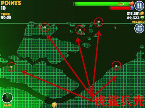 饥饿鲨进化海螺在地图上可以找到。任务地图,购买条件,60钻石,购买后,可在地图上显示当前鲨鱼的任务海螺位置,更方便玩家们解锁任务、完成任务,获得任务奖励,任务地图是在基本地图的基础上显示的,需要先购买基本地图,由于每只鲨鱼的任务海螺位置都是不同的,这个任务地图也是比较重要的。