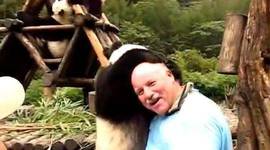 而这位男性游客看到大熊猫很喜欢自己,也非常开心地与它拥抱。就这样一人一动物,开心的玩了许久,男子脸上那灿烂无比的笑容,就足以说明他现在很高兴。这样男人与大熊猫互动了一会之后,想着自己有事要离开这里。但是没想到的是,这大熊猫,好像是不太愿意走,紧紧地搂着男人。一副很舍不得的样子,外国游客看到熊猫这个样子,也不忍走了,就又陪伴了它一小会,但是游客不能老呆在动物园啊,于是只能够狠心挣脱掉走开了。