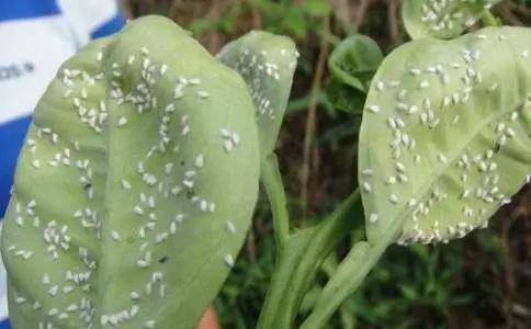 ④熏蒸法: 保护地可用敌敌畏烟剂,每667 平方米用350 一400克,或用80%敌敌畏500克,将敌敌畏倒在分散在温室不同地段的麦秸堆上,点燃后闷棚1夜,间隔5 一7天,连熏2一3次。最好熏蒸过后1一2天喷雾1次。除选用药剂外,喷药时间最好在浇水未干时进行,否则由于白粉虱翅膀干燥便于飞翔,不易喷到身体上。