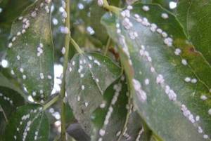 照片看不清楚细节,大概看,如果会飞,就像是白粉虱。如果不会飞,就应该是蚧壳虫。