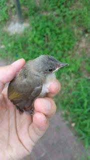 白头鹎幼鸟。白头鹎喜欢将巢筑在相思树或榕树上,在都市中常见以枯草或芒草穗筑碗形巢于阳台花木、树丛盆栽之中, 每年春天三月到五月是白头翁的繁殖期,这段期间,如果见到一只白头翁单独站在突出的枝头或是树顶上高声鸣叫,过不了多久,另一只白头翁飞过来,两只鸟一唱一和,那多半就是它们在互唱情歌了。繁殖期每一对白头翁会建立它们的领域,其范围面积小,巢通常筑在离地面不高的杂木林或树丛上,雌、雄鸟共同育雏,通常一季繁殖1到2次,一窝产3到4枚蛋,繁殖季节几乎全以昆虫为食。幼鸟需要经过大约两个星期的孵化才能破壳而出,再经过大约两个星期的喂食,就可以出巢。