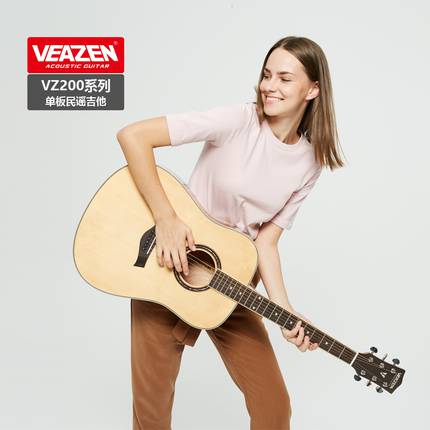 第四款来自VEAZEN费森VZ200单板吉他(价位899),也是近年来很多新生代初学者的人生第一款吉他,经典款型设计,整体线条流畅,做工优良,琴身与指板舒适的手感可以让弹奏者更加轻松的演奏它,采用云杉单板,再加上独家用的音梁结构设计,让音色更出色,可以完全满足平常的演奏奏弹唱!音色手感做工在这个价位里的吉他当中算是无敌了,强烈推荐!!