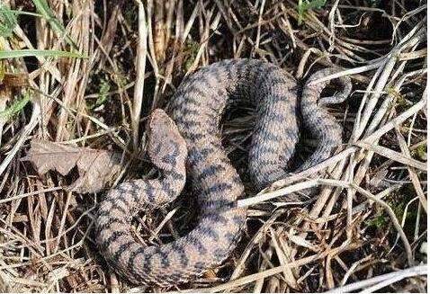 4、蝮蛇:蝮蛇通常为60~100厘米,头略显三角形,颈细,全身黑色小圆斑尾尖黑色,剧毒。
