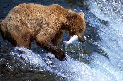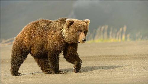 棕熊:亦称灰熊。是陆地上食肉目体形最大的哺乳动物之一,体长1.5-2.8米,肩高0.9-1.5米,雄性体量135-545千克,雌性体重80-250千克。头大而圆,体形健硕,肩背隆起。被毛粗密,冬季可达10厘米;颜色各异,如金色、棕色、黑色和棕黑等。
