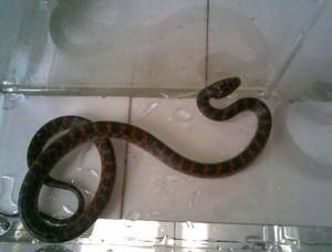 赤链蛇是蛇亚目游蛇科链蛇属的一种,俗称火赤链、红斑蛇、桑根蛇等。分布于中国、日本、韩国、老挝、越南、俄罗斯的无毒蛇。在中国分布的为赤链蛇指名亚种(Lycodon rufozonatus rufozonatus)。该亚种成体全长约1米左右,体背黑褐色与红色相间。因具有51—87+12—30以上的红色窄横纹而得名,但部分个体缺少红纹。颊鳞常入眶。头背黑色,鳞缘红色,枕部有一“∧”形红色斑,眶后有一黑纹向后达第7枚上唇鳞。背鳞平滑,或体后段的中央少数几行微棱,19(17,20,21)—17(19)—15(17),福建崇安一标本中段行数为21。腹鳞雄188—224,雌184—222。
