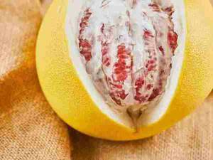 1,三红蜜柚除了具备红肉蜜柚特征特性外,果外皮在相应遮叶下呈淡粉红色和果皮下的海绵层是粉红色的,
