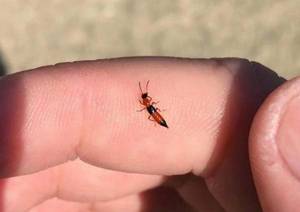 毒隐翅虫,又被称为“青腰虫”,身长0.6~0.8cm,类似飞蚂蚁,停下时尾部上下扭动,把翅膀收回,且有趋光性,白天栖息在杂草石下,夜间出来活动,夏秋两季最常见,喜欢围绕日光灯等飞行。体外没有毒腺,不会蜇人,但是体内有毒液(强酸性毒汁,pH值1到2),在被打死后毒液会流出来。