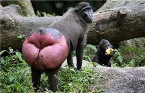 不光是雌性拥有性皮,在某些灵长类的雄性中也又性皮的存在。狒狒雄性的屁股也和雌性相似,又红又亮,不过没有雌性那么肿胀,而是平坦地发着红。