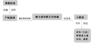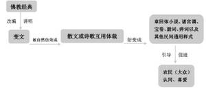 也就是说佛教经典通过讲唱的形式成为变文,然后经历了以下变迁过程(图1):
