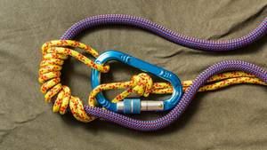 知识:将牵引绳末端的套环挂在右手拇指上,合上手指握住套环。
