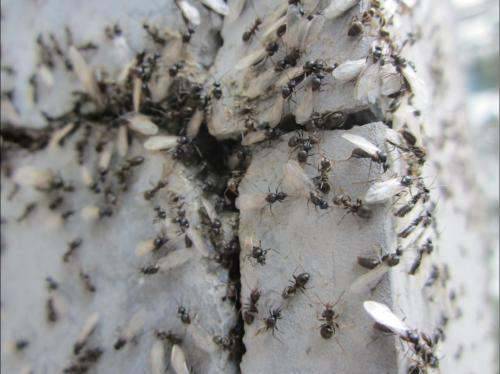 因此,你在地下找到了断了的翅膀,有可能是配对成功的繁殖蚁,也有可能是未配对成功的繁殖蚁,如果配对成功,你会看到两只繁殖蚁的头尾相连,因为它们正在寻找另一个合适的地方筑巢。