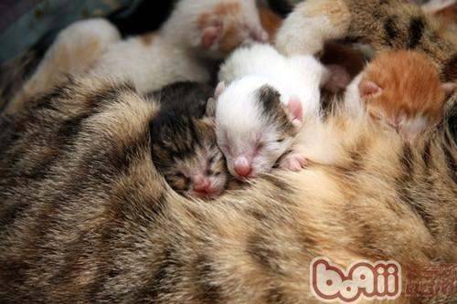 初生小猫开始的四天里,环境温度应该保持在29.4°~32.2℃,以后可以慢慢降低到第7到10天的(26.7℃,到第四个星期结束时,到22.2℃。如果一窝里有好几只小猫,温度不需要这么高,因为它们会自己偎在一起取暖。