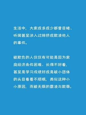在霸凌者眼里,自己就是“好人”,",自己根本没有错,只是找了个乐子,而被霸凌者受到的伤害,可能一辈子都无法消解。