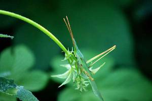 特征:身体草绿色,雄虫的前翅互相摩擦,能发出“括括括”的声音,清脆响亮。翅比身体短,触角很长,身体肥胖。