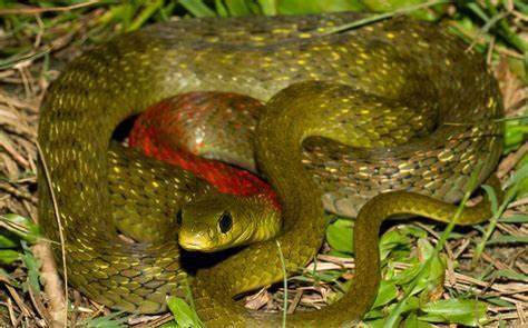 下图为 红脖颈槽蛇 Rhabdophis subminiatus,俗称 红脖游蛇