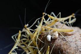 螳螂在蜕皮的时候,是要挂在木槽上的,这说明,螳螂在蜕皮前,螳螂会倒挂,然后从顶部脱皮,所以喂养箱必须足够高,否则如果螳螂的头在底部脱皮,就会蜕皮失败,喂养箱的顶部和两侧都足够粗糙,否则螳螂的蜕皮就会倒下,导致死亡。喂食箱的高度应该是螳螂的三倍,喂食箱的侧面也覆盖着粗纱,另外,螳螂脱壳前,脱壳较少干扰,否则也会脱壳失败。