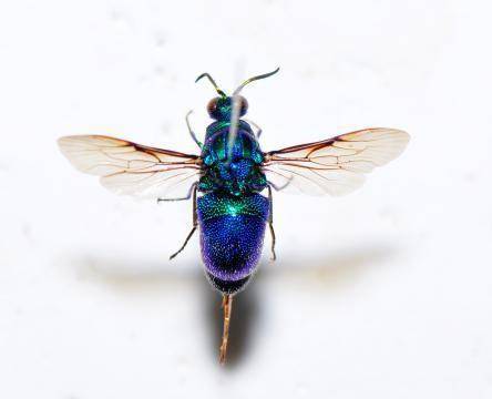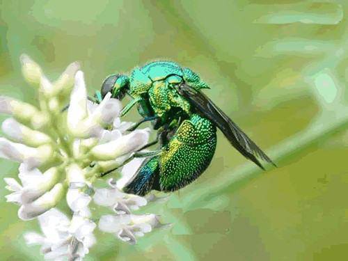 青蜂,属青蜂科,英文名 CUCKOO WASP,又译杜鹃蜂、红尾蜂,大多数分布于华北部分地区。产卵方式奇特,青峰将自己的卵产在蜜蜂、胡蜂的巢穴内,或者其他幼虫的皮肤上,幼虫孵化出来后通常会吃掉蜂巢内的食物,甚至把蜜蜂、胡蜂的小幼虫也吃掉,科学家将这种现象称为“借巢产卵”。